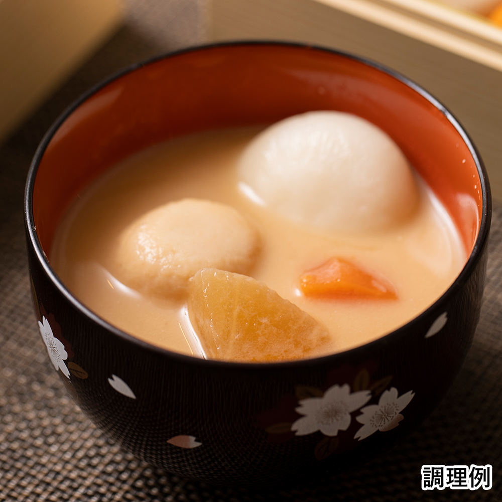 - 白みそ(大豆を含む、京都府製造)、野菜(さといも、だいこん、にんじん)、粗糖、食塩、かつおぶし、昆布