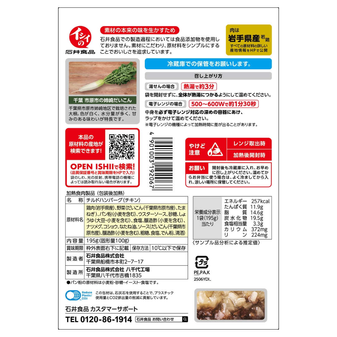 千葉県市原市が誇る、みずみずしく甘い「姉崎だいこん」を贅沢に使用したおろしソースハンバーグです。 大根の甘みと食感を最大限に引き出すため、ダイスカットした大根を追加し、酸味を抑えたソースでよりごはんに合うハンバーグにリニューアルしました。パッケージも、大根の写真が大きく入ったデザインに刷新!さっぱりとした大根のソースがジューシーなハンバーグとよく合い、お箸が進みます。ぜひご賞味ください。