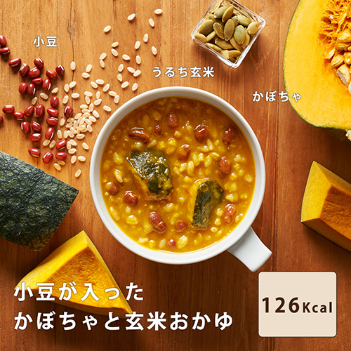 やさしい甘みのかぼちゃと小豆が入ったおかゆです。