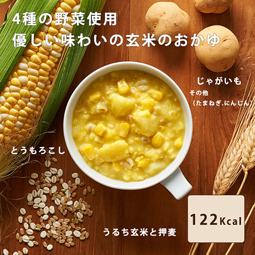 やさしい食感のほくほくじゃがいもと、スイートコーンが入ったおかゆです。