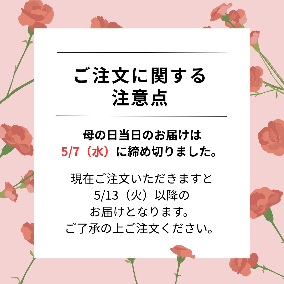 母の日当日5月11日(日)までのお届けは、7日(水)に締め切りました。
