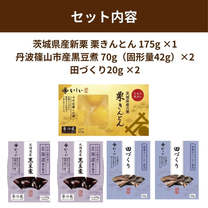 茨城県産産新栗を、栗剥き・甘露煮加工・栗きんとん製造に至るまですべて国内で丁寧に行いました。今年採れた新栗の風味をご堪能ください。