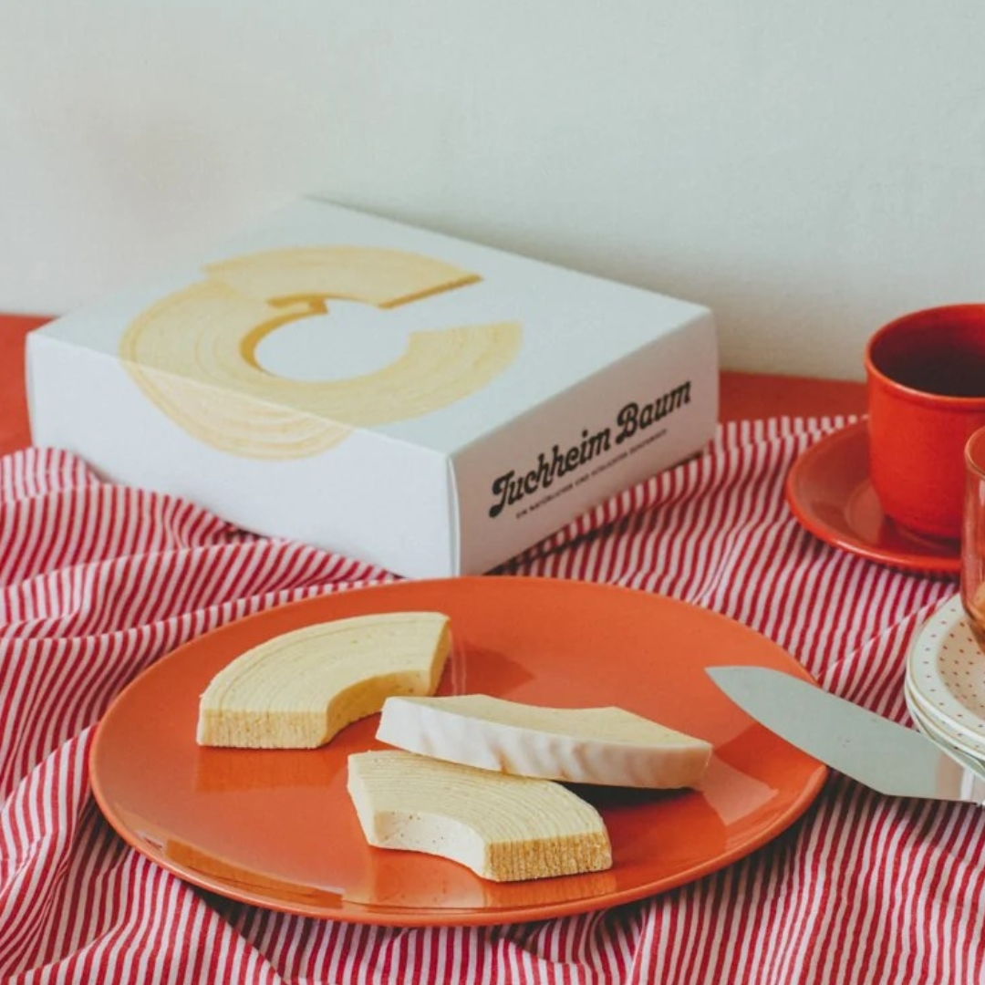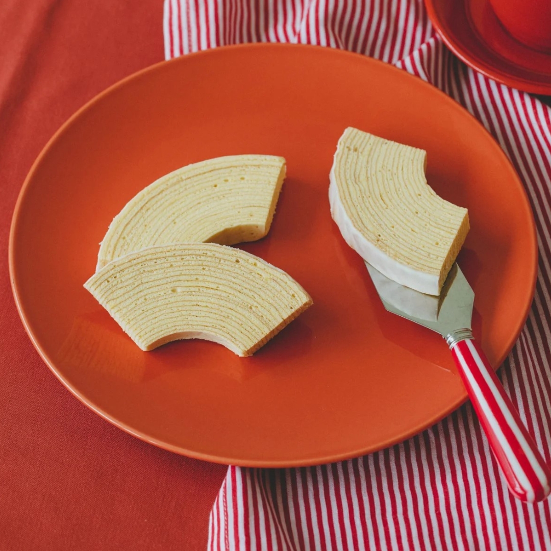 乳化剤や膨張剤を使わずにしっとりと香り豊かに焼きあげたバウムクーヘンを、おいしいバランスの厚さ15mmにカットしました。