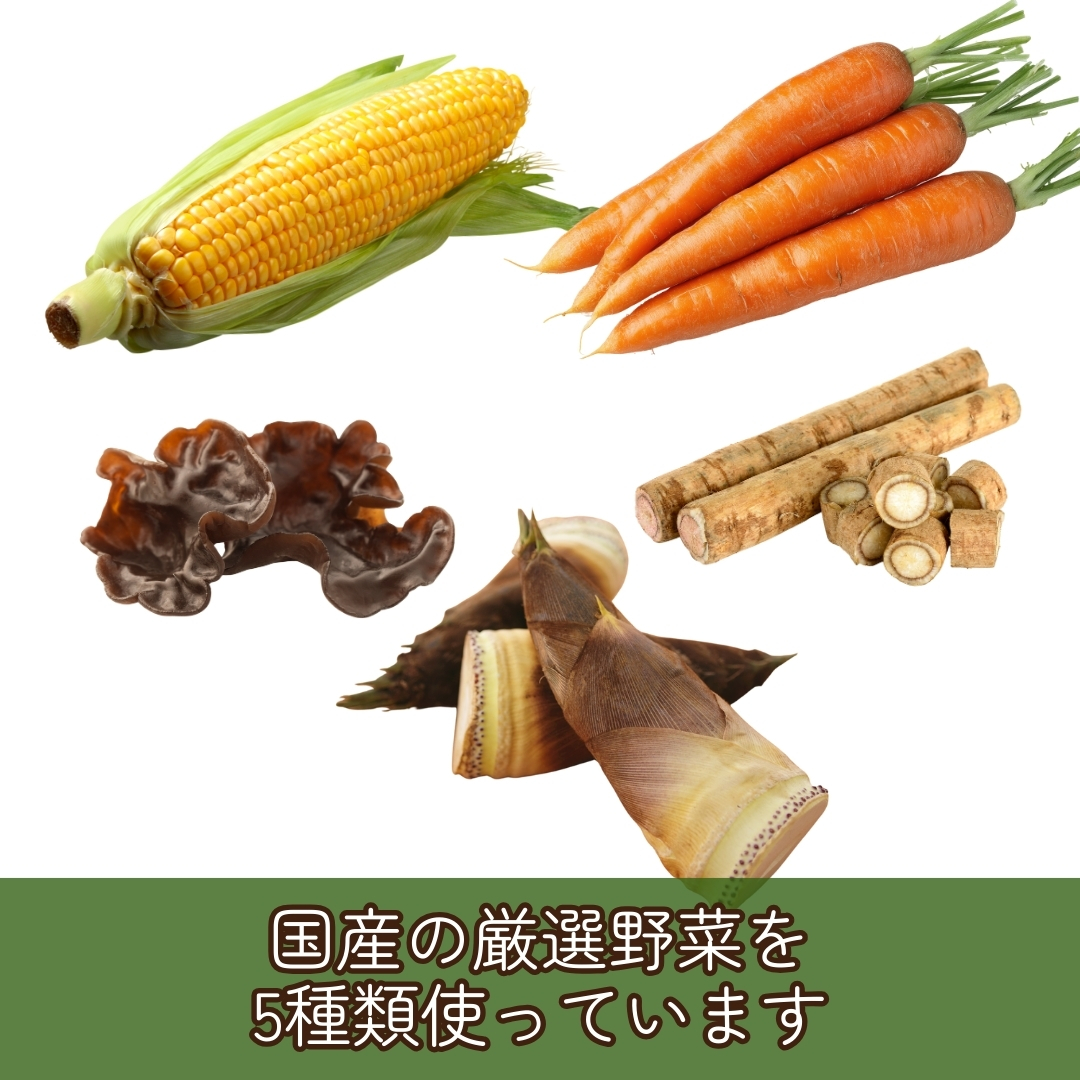 5種類の国産野菜を使い、だしがきいた優しい味付けで仕上げました。大人も子供も、日々の食事に活躍すること間違いなし。
