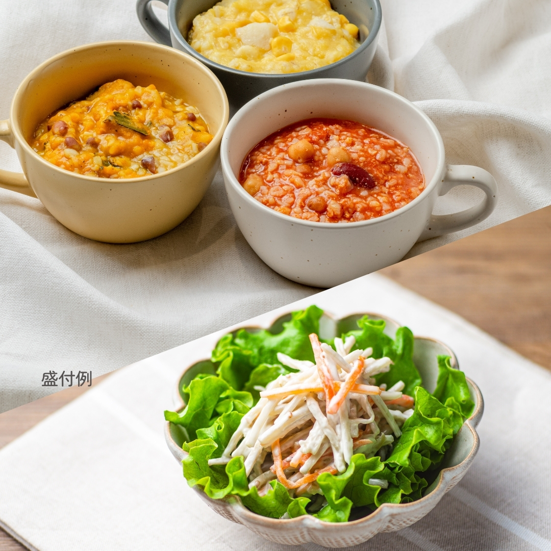 やさしい食感のほくほくじゃがいもと、スイートコーンが入ったおかゆです。